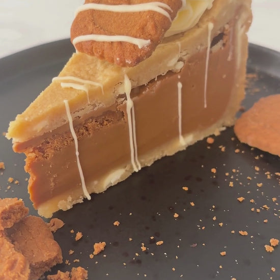 Satisfy your sweet tooth with our Biscoff Cookie Pie – a rich, golden cookie pie laced with creamy white chocolate chips and filled with a smooth, gooey Biscoff spread centre. Every bite delivers the perfect balance of warm, spiced caramelised biscuit flavour and creamy sweetness, making it a must-try for Biscoff lovers!