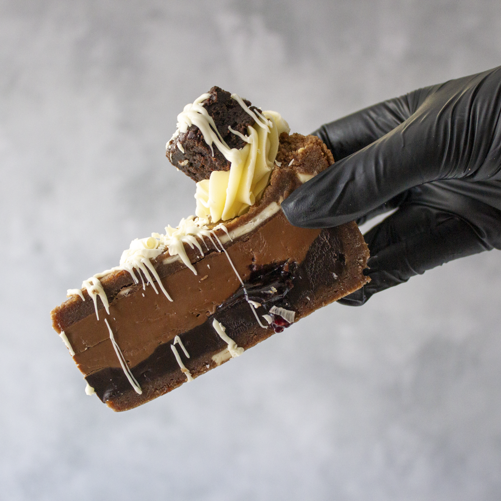 Introducing the Black Forest Cookie Pie Slice from DoughGirl — the perfect mash-up of nostalgia and indulgence. This festive dessert features layers of rich chocolate cookie dough, sweet cherries, and a gooey chocolate centre, all baked into a thick, decadent pie slice.