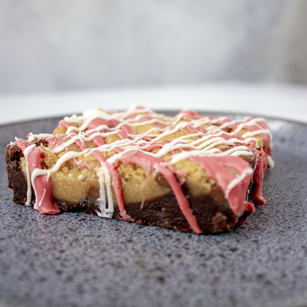 Introducing the Limited Edition Brookie Slab – the ultimate DoughGirl indulgence. We’ve blended our classic fudgy brownie with a soft, chewy cookie base to create a treat that’s truly next-level. To top it off, each slab is luxuriously drizzled with ruby chocolate and white chocolate, making every bite a feast for your eyes and taste buds.