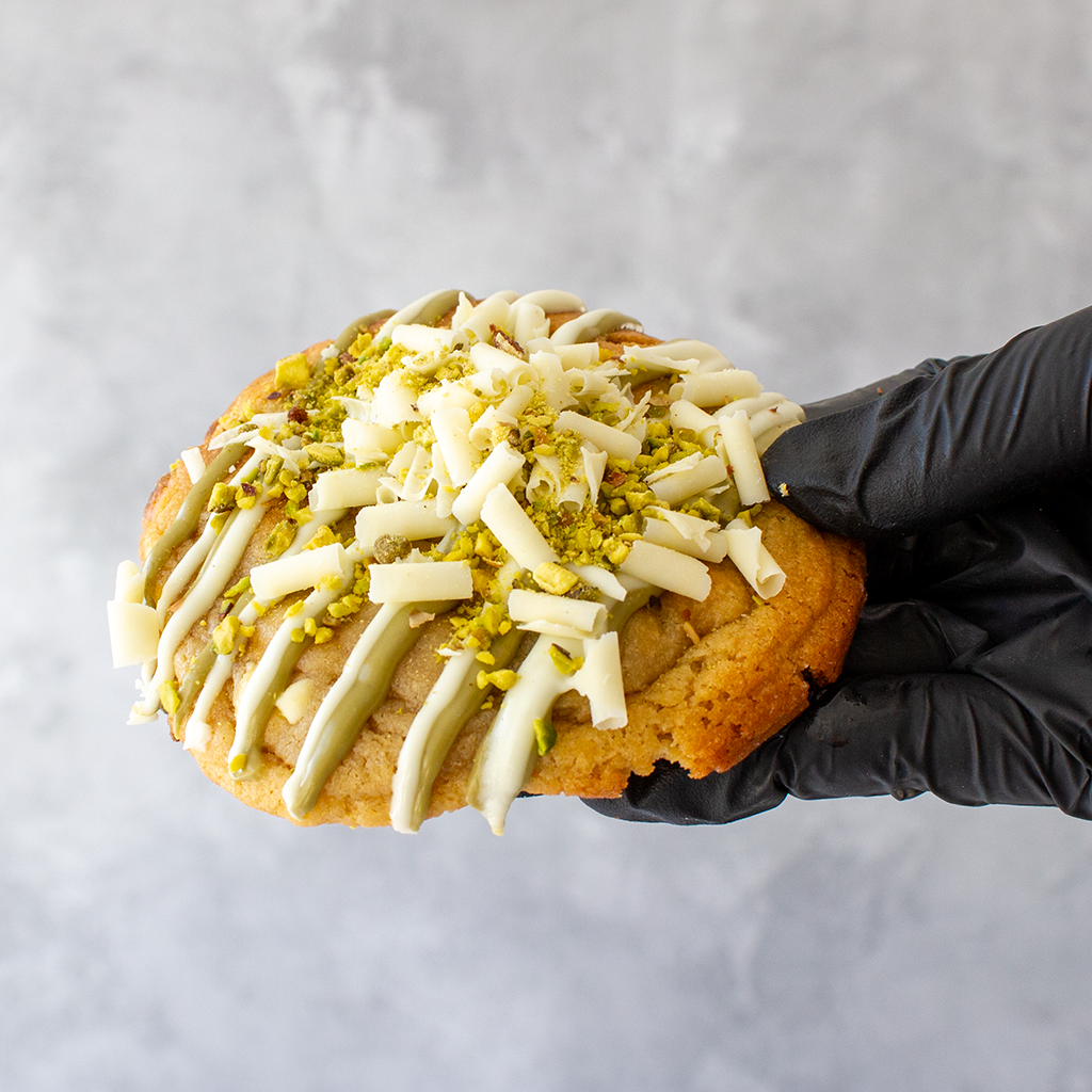 Indulge in Our Pistachio & White Chocolate Stuffed Deluxe Cookie