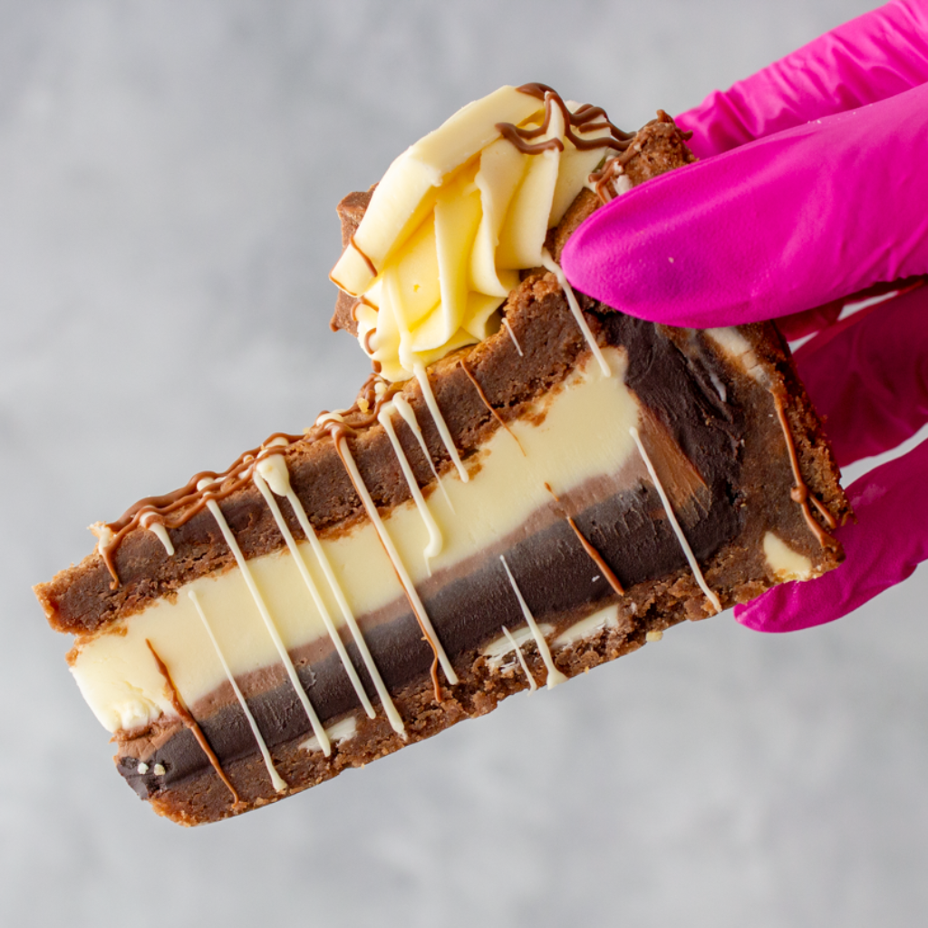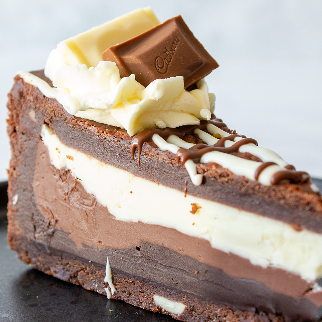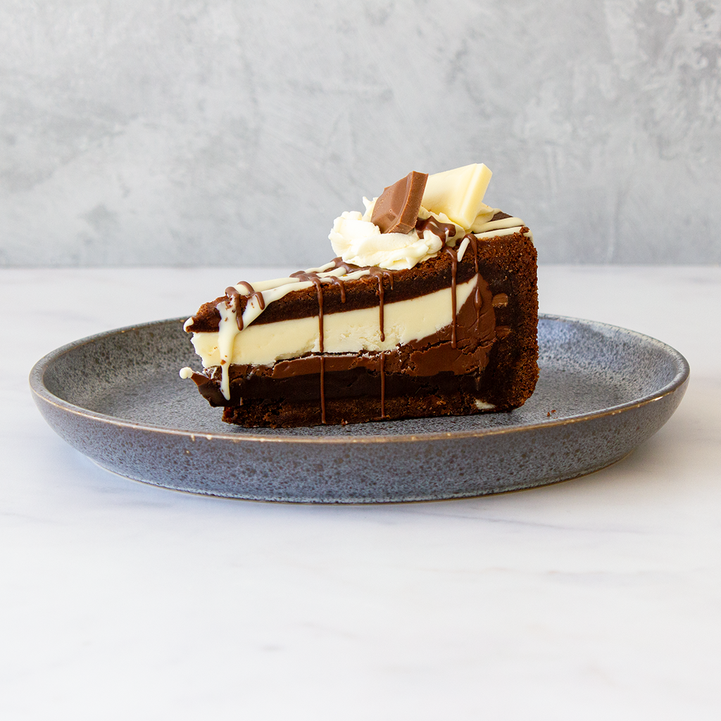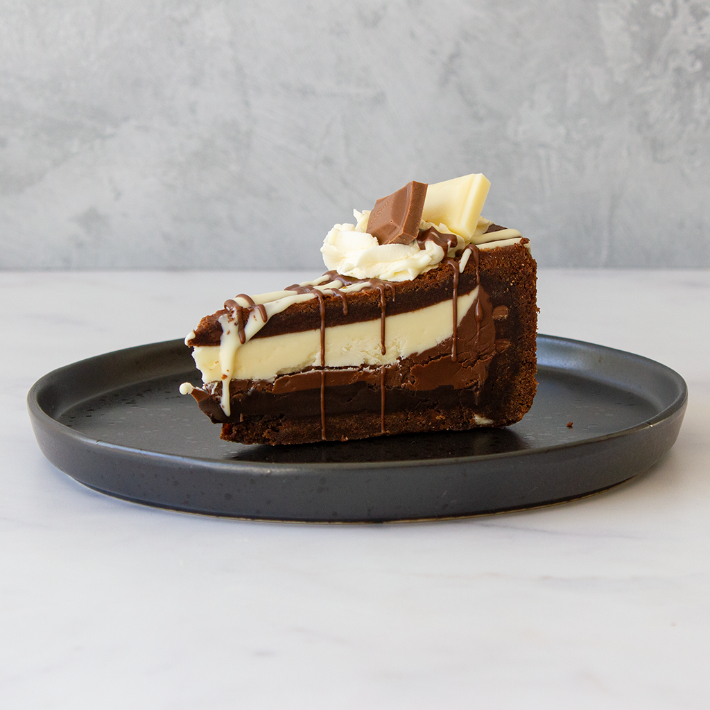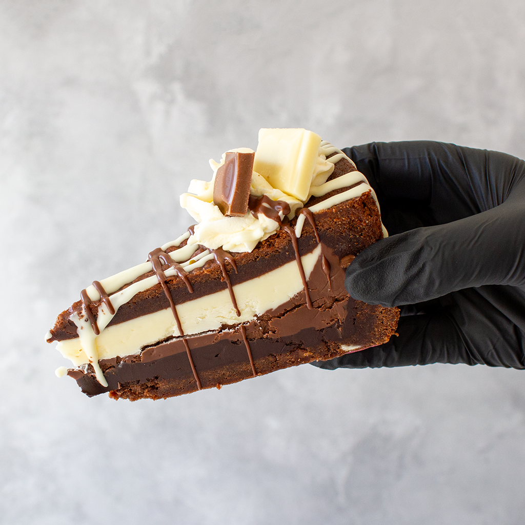 Baked to perfection, this gooey, chocolate-loaded masterpiece delivers the best of all three chocolates in every bite – the silky sweetness of white chocolate, the comforting creaminess of milk chocolate, and the bold richness of dark chocolate. Whether you’re a chocoholic or just in need of a seriously epic dessert, this is the one to try!
